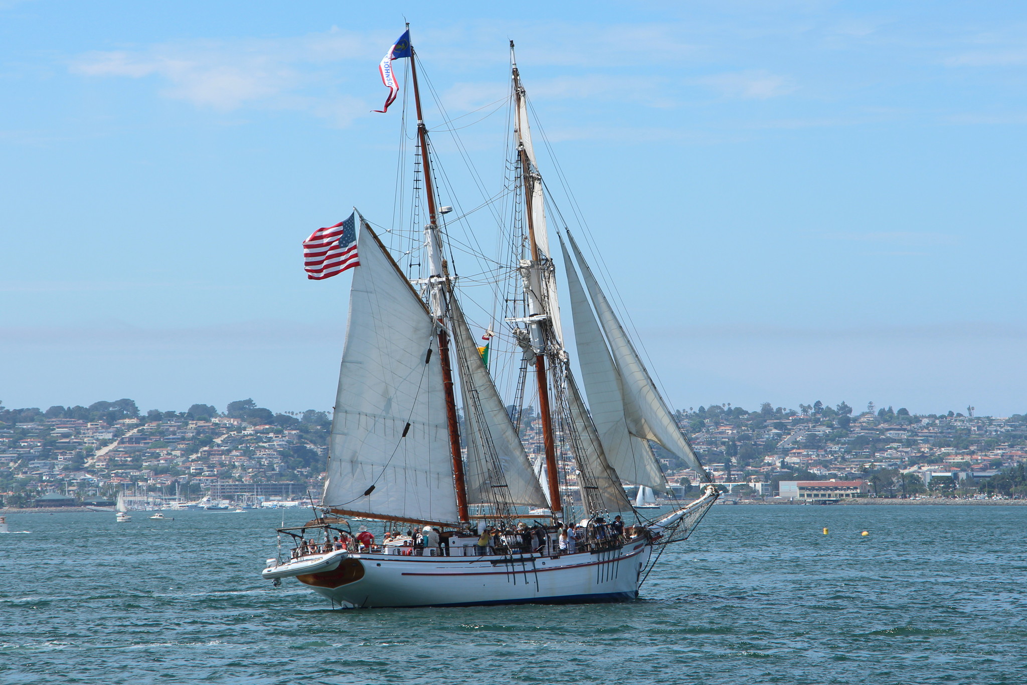The “Spirit of Dana Point” and “Exy Johnson” sailing together in San Diego Bay.
